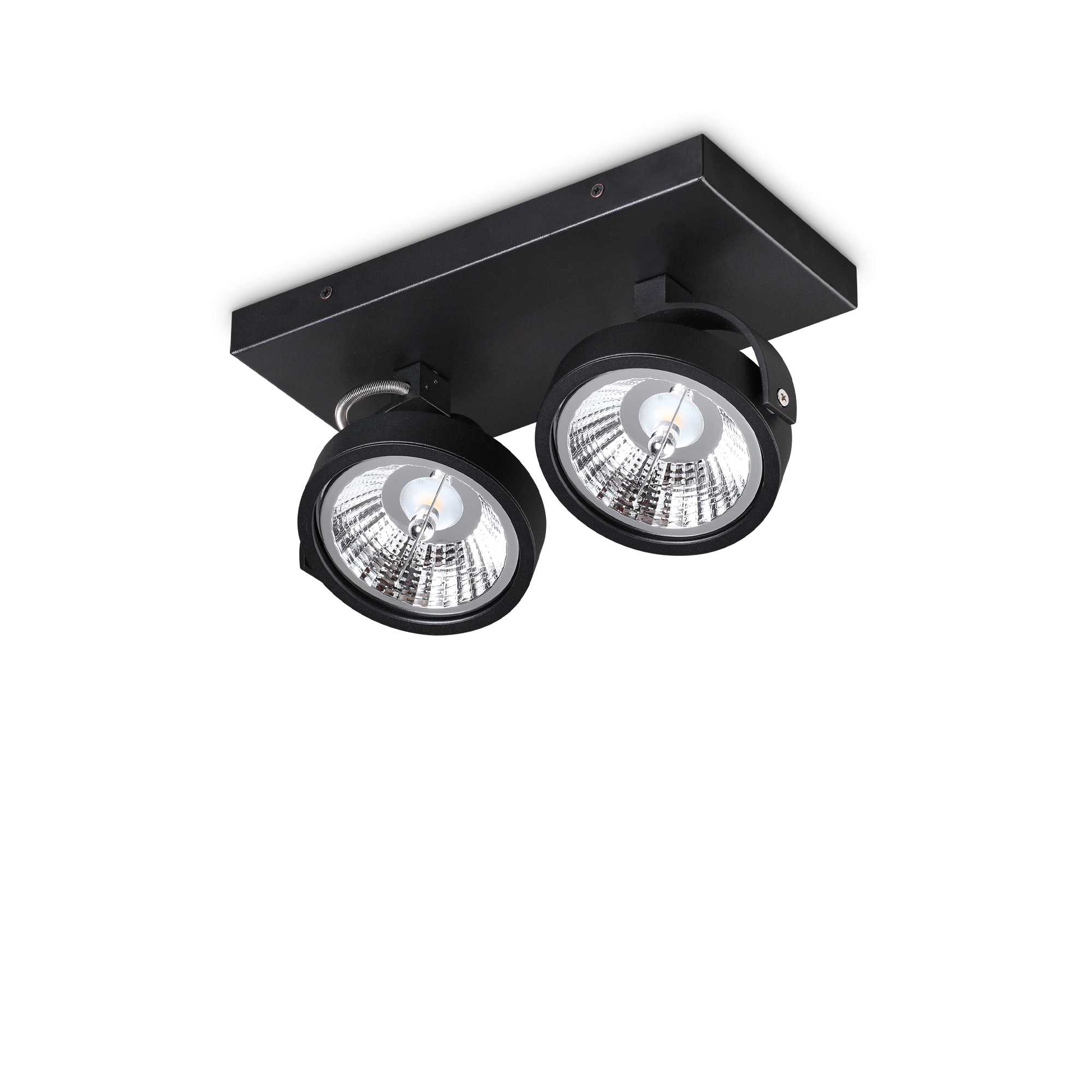 Lampada da soffitto – Dimensioni: L 280 x H min 125 / max 165 x P 140 mm – GU10 max 2 x 50W. Finitura: Nero